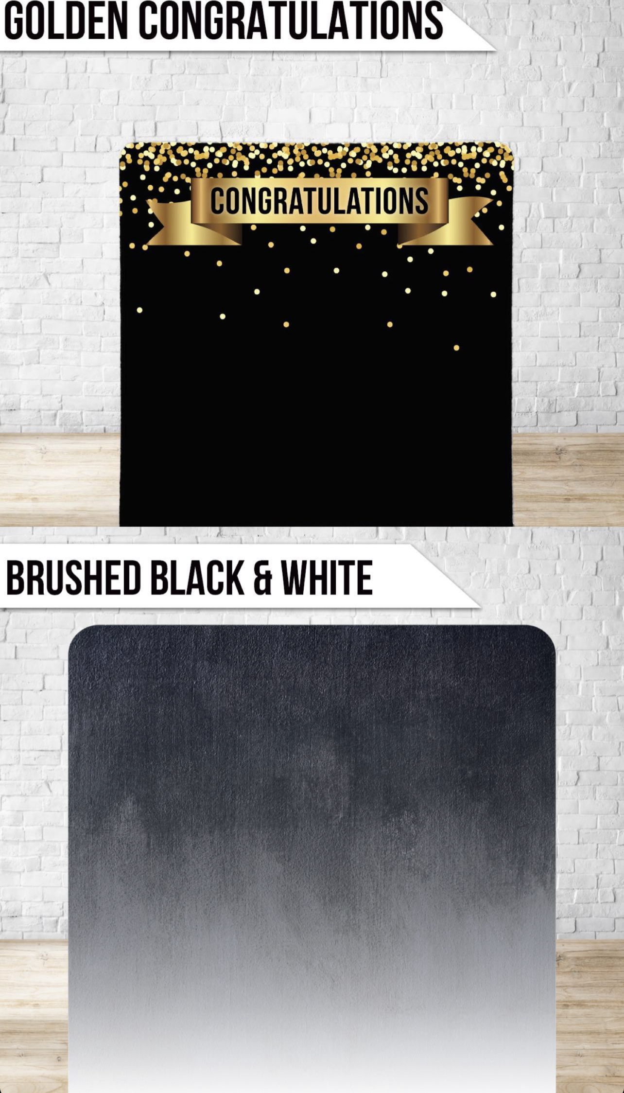 PB Backdrop – Golden Congratulations/Brushed Black & White (7.6×7.6)
